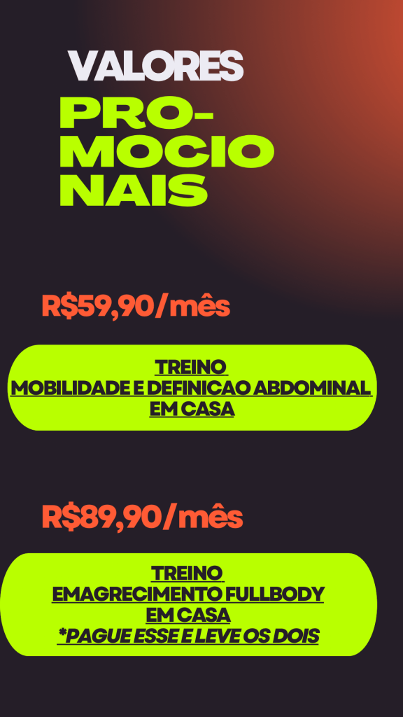 ⚠️⚠️⚠️ BÔNUS: DOIS TREINOS PELO PREÇO DE UM‼️ fazendo o EMAGRECIMENTO FULLBODY você leva também MOBILIDADE E DEFINIÇÃO ABDOMINAL para um treino completo que vai turbinar sua evolução.